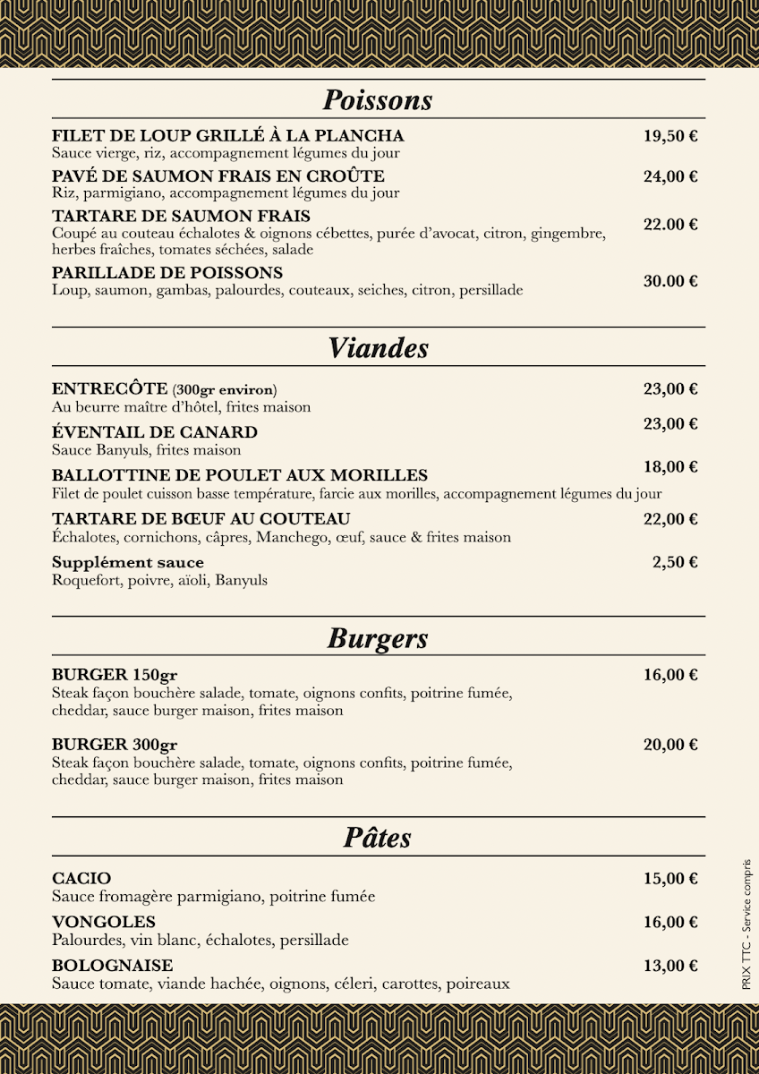 Welcome to La Brasserie du Soleil, a culinary gem nestled on the beautiful Côte Radieuse in Canet-en-Roussillon, France. The essence of this charming brasserie lies in its commitment to delivering a delightful dining experience with a menu that captures the flavors of the Mediterranean. Enjoy well-crafted dishes, featuring a Menu du jour that offers an entrée, main course, and dessert for just €20.00, or opt for other combinations for €18.00.